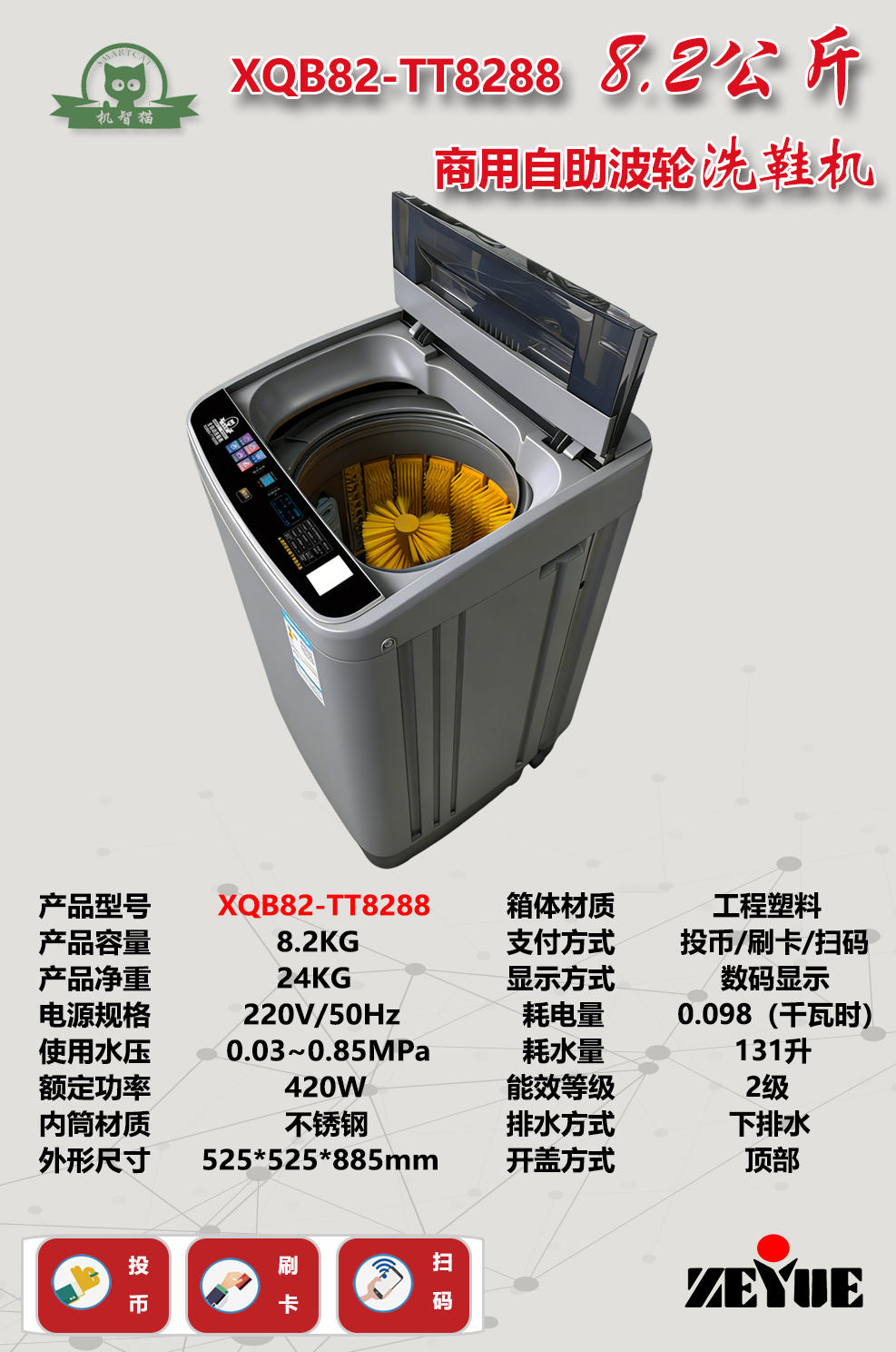 機智貓XQB82-TT8288校園自助波輪洗鞋機